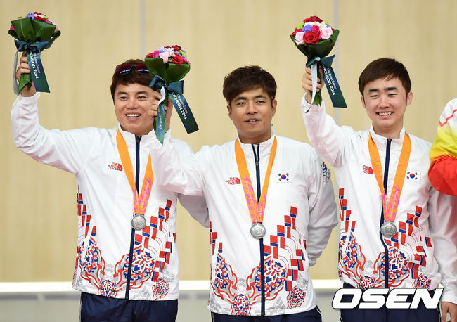 25일 인천 옥련국제사격장에서 2014 인천 아시안게임 남자 25m 스탠다드권총 시상식이 열렸다.