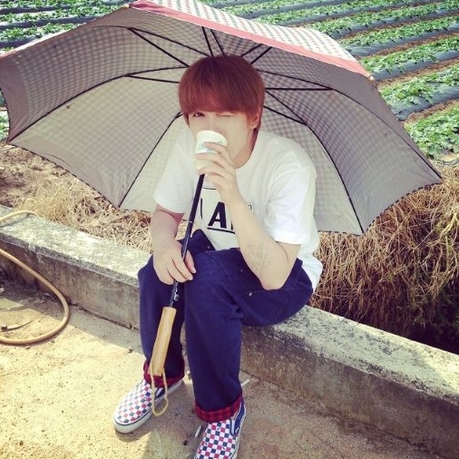 공개된 사진 속 이홍기는 우산을 쓰고 앉아 음료를 마시고 있다. 특히 카메라를 향해 날리는 깜찍한 윙크로 보는 이들을 설레게 만들었다.