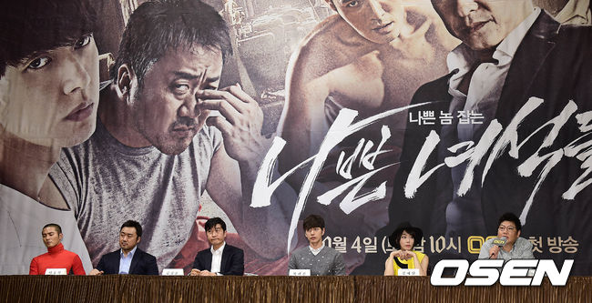 25일 오후 서울 강남구 임피리얼 팰리스 호텔에서 열린 '나쁜녀석들'(극본 한정훈, 연출 김정민, 제작 얼반웍스미디어) 제작발표회 현장에는 배우 김상중, 마동석, 박해진, 조동혁, 강예원, 그리고 김정민 감독이 참석해 첫 방송에 앞서 작품에 대한 이야기를 다양하게 풀어냈다.