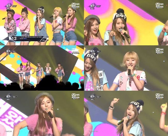 이날 발랄한 의상을 입은 채 무대에 오른 멤버들은 귀여운 퍼포먼스와 표정 등으로 상큼발랄한 매력을 뽐냈으며 매끈한 각선미를 과시, 섹시미까지 발산했다.