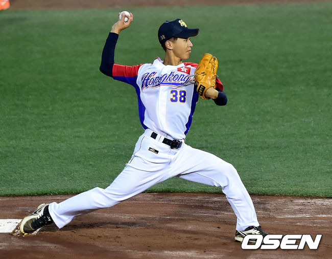 25일 서울 목동야구장에서 2014 인천 아시안게임 B조 예선 3차전 한국과 홍콩의 경기, 1회초 홍콩 렁가호가 역투하고 있다.