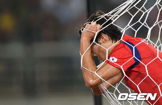 전반 한국 이용재가 슛에 실패하자 아쉬워하고 있다.