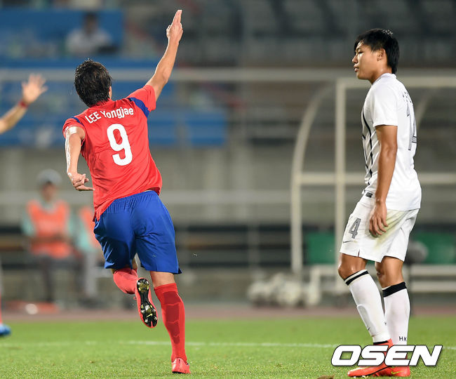 후반 한국 이용재가 골을 성공시키고 환호하고 있다.