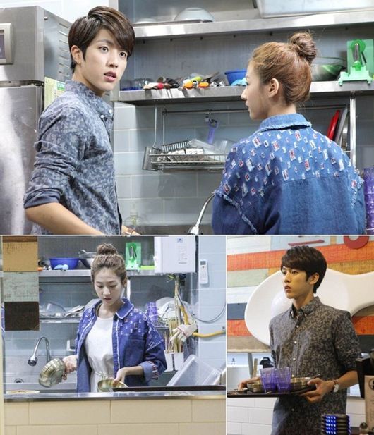 26일 공개된 사진 속에는 엉뚱한 4차원 천사 이슬비와 천사를 짝사랑하는 엄친아 성열로 열연 중인 김새론과 이성열이 각각 설거지와 서빙을 도맡아 하는 모습이다.