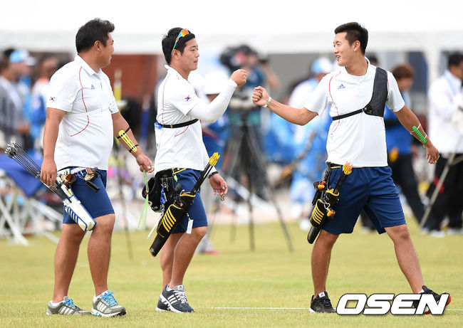 여자 리커브 대표팀도 단체전 준결승 진출에 성공했다. 참가국 수가 적어 예선을 선두로 마친 한국은 16강을 갖지 않고 8강전부터 시작했다. 정다소미(24, 현대백화점), 장혜진(27, LH), 이특영(25, 광주시청)이 팀을 이뤄 출전한 한국은 8강에서 카자흐스탄을 5-1로 꺾었다. /sunday@osen.co.kr