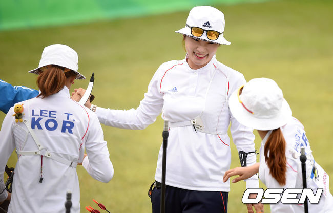 경기 종료 후 여자 리커브 대표팀이 환호하고 있다. /sunday@osen.co.kr