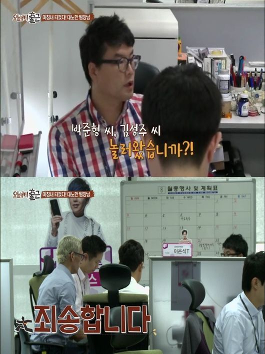 박준형과 김성주가 배치된 팀의 이은석 팀장은 박준형보다 나이가 두 살 어리지만, 업무적인 부분에서는 봐주는 것 없이 묵직한 카리스마를 발산한다. 호랑이 팀장의 분노를 산 박준형과 김성주의 행동이 무엇이었을지 궁금증을 불러일으킨다.