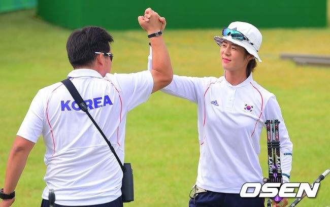이에 앞서 여자 단체전에서는 금메달이 나왔다. 최보민(30, 청주시청), 김윤희(20, 하이트진로), 석지현(24, 현대모비스)으로 구성된 여자 컴파운드 대표팀은 금메달 결정전에서 대만을 229-226으로 꺾고 금메달을 차지했다. ./ soul1014@osen.co.kr