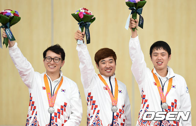 한진섭(33, 한화갤러리아), 권준철(26, 상무), 김종현(29, 창원시청)은 27일 인천 옥련국제사격장에서 열린 2014 인천아시안게임 사격 남자 50m 소총 3자세에서 합계 3484점을 쏴 중국(3502점)에 이어 은메달을 목에 걸었다.
