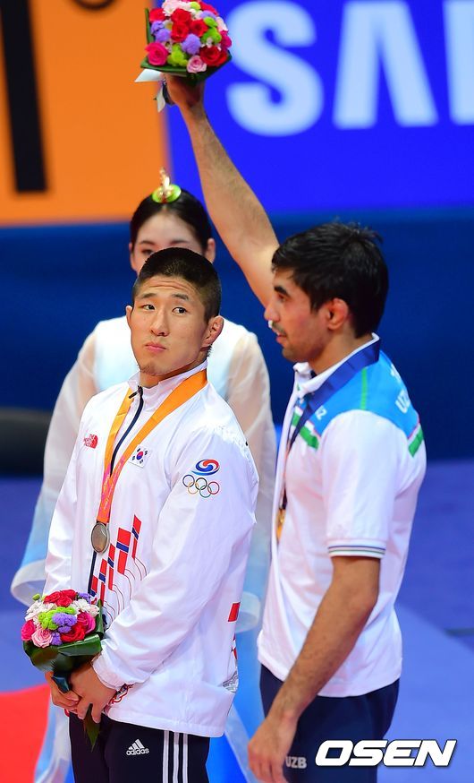 레슬링 남자 자유형의 오만호(25, 울산남구청)가 2014 인천아시안게임 은메달을 목에 걸었다.