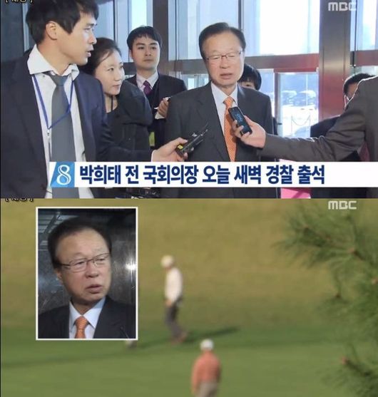 27일 오후 방송된 MBC '뉴스데스크'에 따르면 골프를 치면서 캐디를 성추행한 혐의를 받고 있는 박희태 전 국회의장은 이날 새벽 4시 반쯤 강원지방경찰청 성폭력 특별 수사대에 출석했다.
