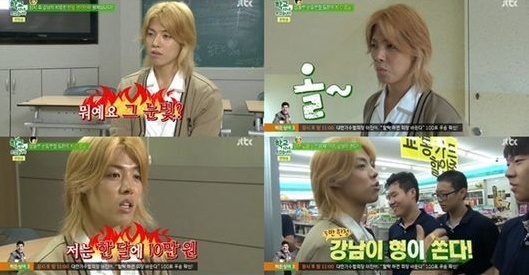 선두주자는 JTBC '학교다녀오겠습니다'의 강남이다. 이 프로그램에서 저소득 아이돌로 불리고 있는 그는 '돈이 없는' 자신의 상태를 전혀 부끄러워하지 않아 시청자들의 호기심을 불러일으켰다. 그는 친구들에게 음식을 사줄 돈이 없다며 혼자 매점에 가는가 하면, 툭하면 제작진에게 돈을 빌려달라고 하고 돈을 빌린 후엔 8년 할부로 갚겠다고 한다.