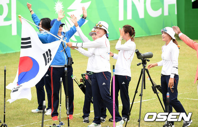 한국 양궁이 아시안게임 여자 리커브 단체전 5연패라는 금자탑을 세웠다. 남자도 한일전에서 승리하며 동메달을 얻어냈다.