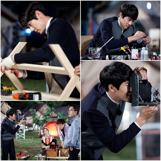 공개된 비하인드컷에서도 그는 직접 무거운 공구를 들고 가구를 만드는가 하면 마치 실험도구와도 같은 다양한 기구들 앞에서 집중, 그리고 MC들의 모습을 카메라에 담고 있다.
