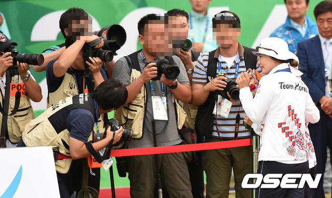 금메달을 획득한 한국 정다소미가 취재진 앞에서 포즈를 취하고 있다. /sunday@osen.co.kr