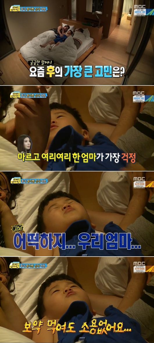 28일 오후 방송된 MBC 예능프로그램 ‘일밤 - 아빠! 어디가?’(이하 ‘아빠 어디가’)에서는 함께 여행을 떠난 윤민수 어머니와 윤민수, 윤후 부자의 모습이 그려졌다.