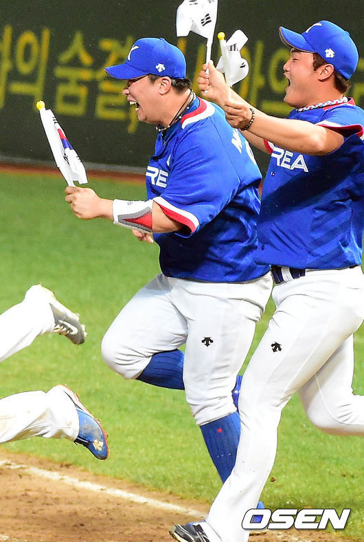 이 가운데 나지완은 대표팀 우승 직후 그라운드에 뛰어나와 동료들과 기쁜 마음을 함께 했다. 강민호와 함께 안타를 이번 대회에서 때리지 못하며 마음고생을 했던 나지완은 한국의 우승으로 부담을 덜어낼 수 있게 됐다.
