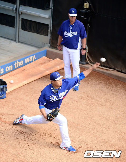 한편 왼 어깨 통증 재활에 박차를 가하고 있는 류현진은 순조로운 회복세를 알리고 있다. 이날 류현진은 매팅리 감독이 지켜보는 가운데 불펜에서 전력 투구를 했다. 어깨에 별다른 문제가 없다면 2일 시뮬레이션 피칭을 할 예정이다./jpnews@osen.co.kr