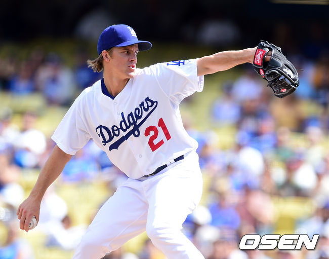 1회초 다저스 선발 그레인키가 역투하고 있다.