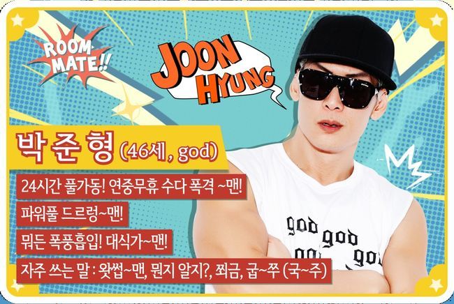 박준형은 지난 21일 '룸메이트2'에 첫 등장해 자유분방한 행동으로 종횡무진 활약했다. 박준형 외에도 다른 멤버들의 캐릭터 카드는 매일 한명씩 공개될 예정이다.