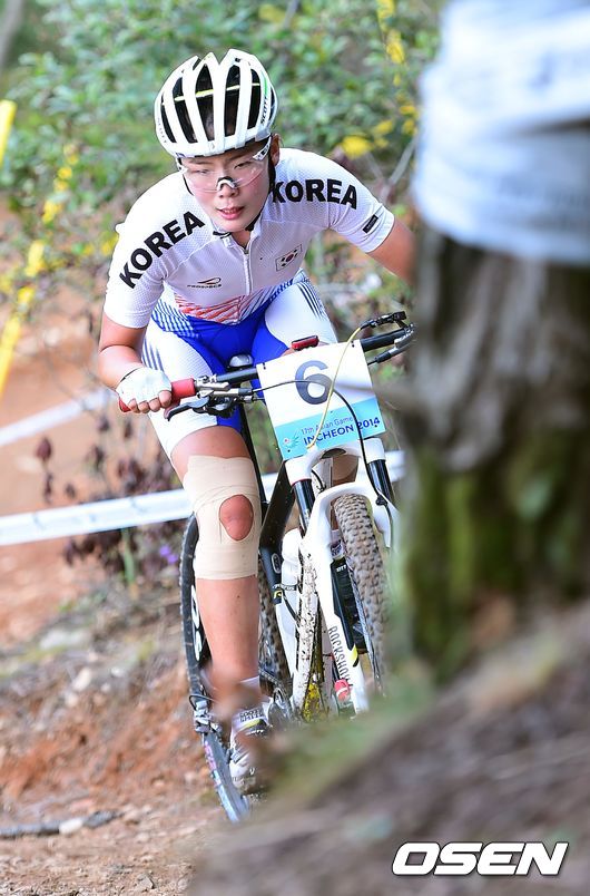 30일 인천 영종도 백운산 MTB 코스에서 진행된 2014 인천 아시안게임 사이클 MTB 여자 크로스컨트리 경기에서 유다정이 질주하고 있다