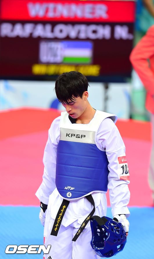 30일 오후 경기 강화고인돌체육관에서 진행된 2014 인천 아시안게임 태권도 남자 74kg급 4강전 송영건이 패배한뒤 아쉬워하고 있다