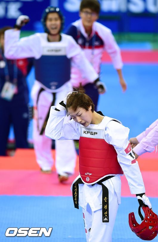 30일 오후 경기 강화고인돌체육관에서 진행된 2014 인천 아시안게임 태권도 여자 53g급 결승전 윤정연이 패한뒤 아쉬워하고 있다