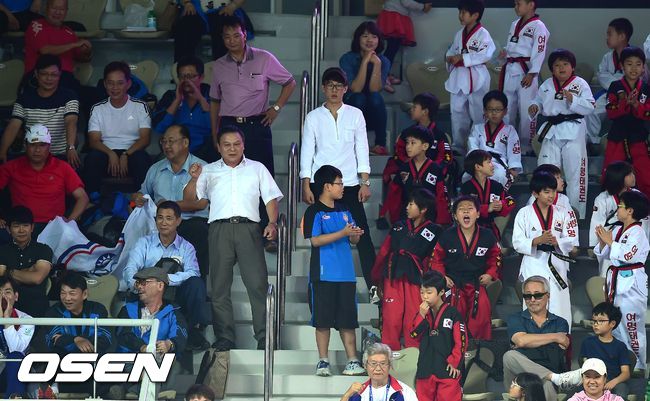 경기중 태권도 도복을 입은 어린이들이 열띤 응원을 하고 있다. / soul1014@osen.co.kr