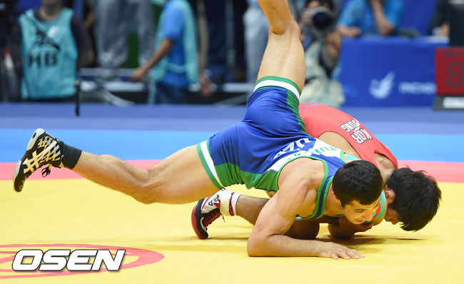 정지현은 30일 인천 도원체육관에서 열린 '2014 인천 아시안게임' 남자 레슬링 그레고로만형 71kg 결승에서 투르디에프 딜소드존(우즈베키스탄)을 만나 9-0으로 폴승을 거둬 금메달을 목에 걸었다.