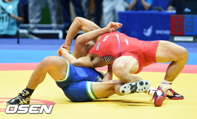 정지현은 30일 인천 도원체육관에서 열린 '2014 인천 아시안게임' 남자 레슬링 그레고로만형 71kg 결승에서 투르디에프 딜소드존(우즈베키스탄)을 만나 9-0으로 폴승을 거둬 금메달을 목에 걸었다.