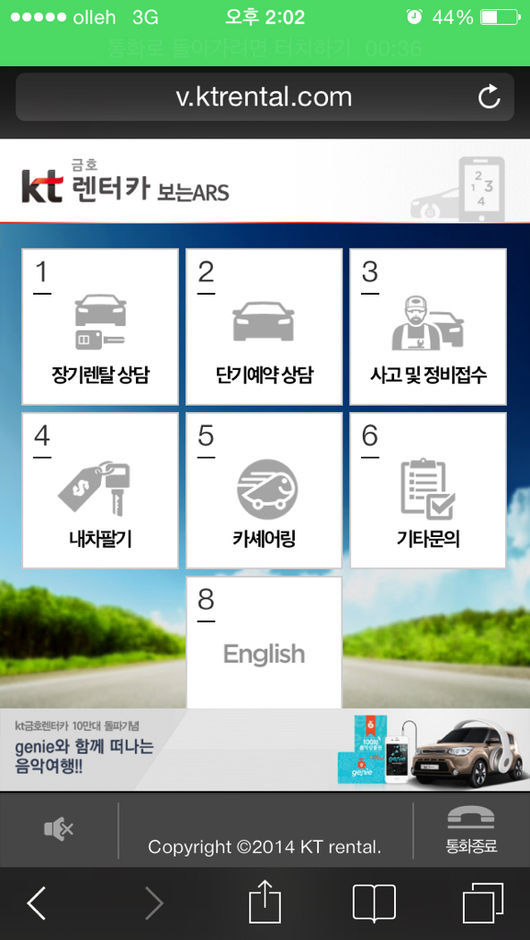 kt금호렌터카가 통화 시 바로 메뉴 선택이 가능한 '보는 ARS'를 업계 최초로 운영한다.