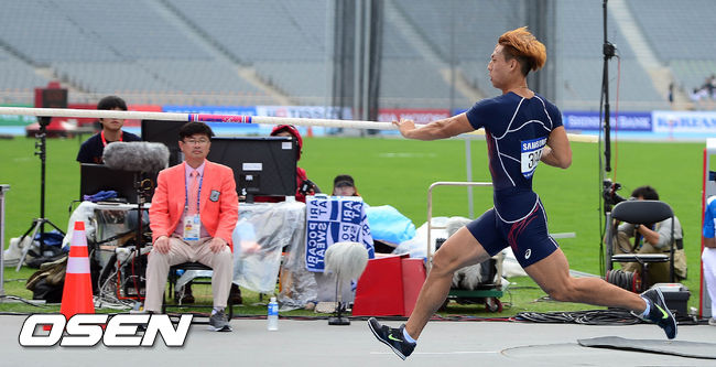 1일 오전 인천 아시아드 주경기장에서 열린 제17회 인천 아시안게임 육상 남자 10종경기에서 배상화가 장대높이뛰기를 하고 있다.