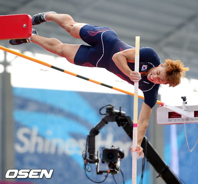 1일 오전 인천 아시아드 주경기장에서 열린 제17회 인천 아시안게임 육상 남자 10종경기에서 배상화가 장대높이뛰기를 하고 있다.