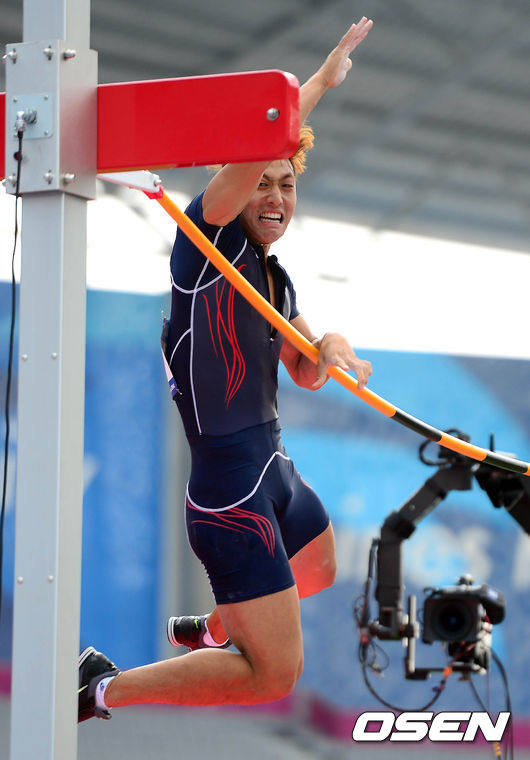1일 오전 인천 아시아드 주경기장에서 열린 제17회 인천 아시안게임 육상 남자 10종경기에서 배상화가 장대높이뛰기를 하고 있다.