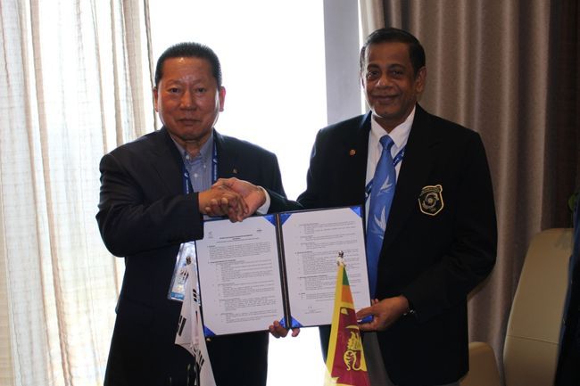 지난달 30일 오전 11시 인천 오크우드 프리미어 VIP 리셥센홀에서 개최된 두 NOC간 체육교류 양해각서(MOU) 체결은 대한체육회(KOC) 김정행 회장과 스리랑카 NOC 허마스리 페르난도 위원장(65)이 참석한 가운데 진행됐다.