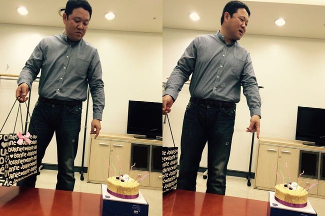 공개된 사진 속 김구라는 한 손에는 선물로 보이는 종이봉투를 들고 한 손으로는 케이크를 가리키며 못마땅한 표정을 짓고 있어 웃음을 자아낸다.