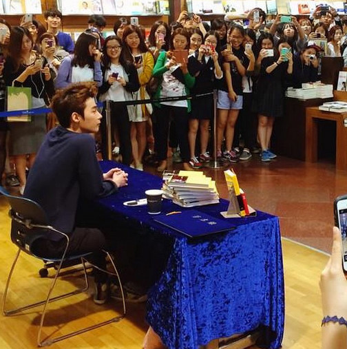 공개된 사진 속에는 의자에 앉아 사인회 준비를 하고 있는 허지웅과 그를 둘러싼 수많은 팬들이 모습이 함께 보인다. 특히 그는 자신을 보고 있는 수많은 사람들의 눈빛에도 여유로운 모습으로 눈길을 끈다.