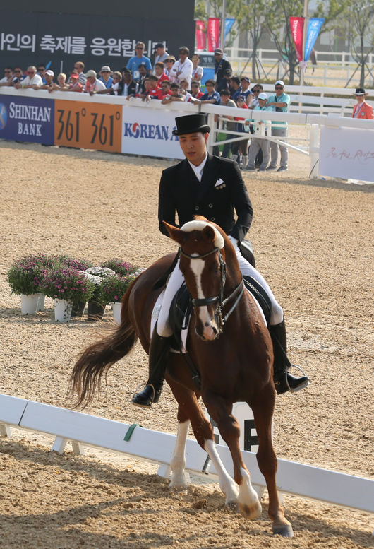 은메달을 획득한 김동선의 기록이 승마계에 새삼 회자되는 것은 결선 2차(23일)프리스타일 종목점수다. 만약 아시안게임이 올림픽과 같은 점수 방식이라면 아시안게임 개인전에서 김동선의 메달색깔이 달라질 수 있기 때문이다.