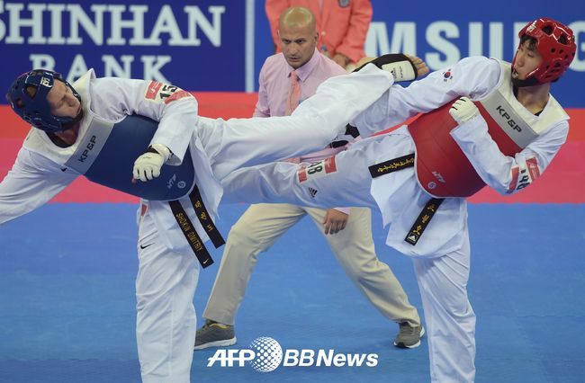 자신보다 훨씬 큰 상대를 만난 조철호는 초반 탐색전을 펼쳤다. 엘 헤다리도 조철호를 상대로 포인트를 뽑아내지 못하며 경기는 팽팽하게 이어졌다. 하지만 조철호는 1라운드 막판 상대의 머리 공격을 피한 뒤 몸통을 가격하며 1점을 따냈다.