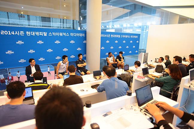 현대캐피탈은 구단미디어데이에 약40여곳의 언론사를 초청해 2014-2015시즌 준비 구단 공식 인터뷰 및 새로운 유니폼 발표 그리고 절강성 배구단과의 공개 연습경기를 준비했다.
