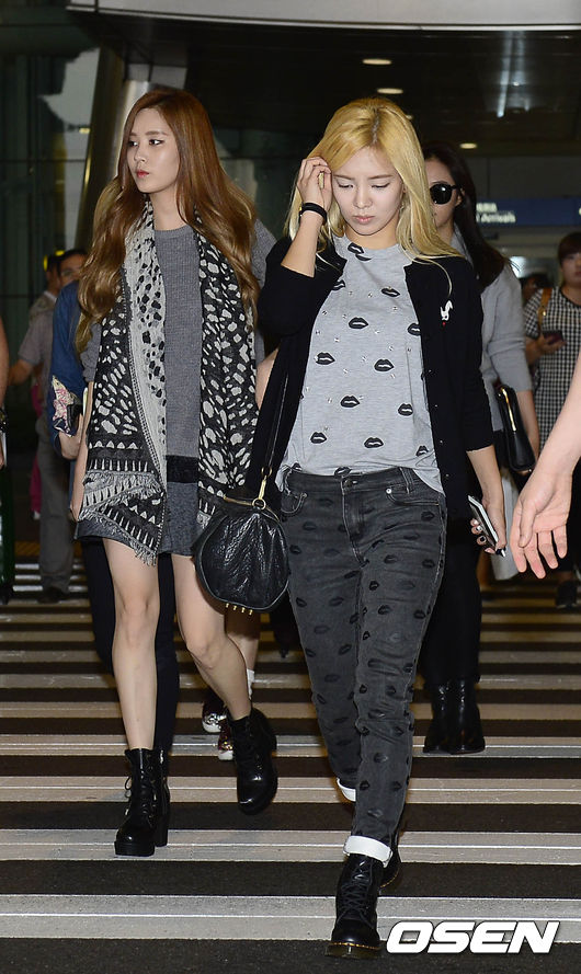 1일 오후 인천국제공항을 통해 소녀시대 태연, 티파니, 효연, 유리, 서현이 입국장을 나서고 있다.