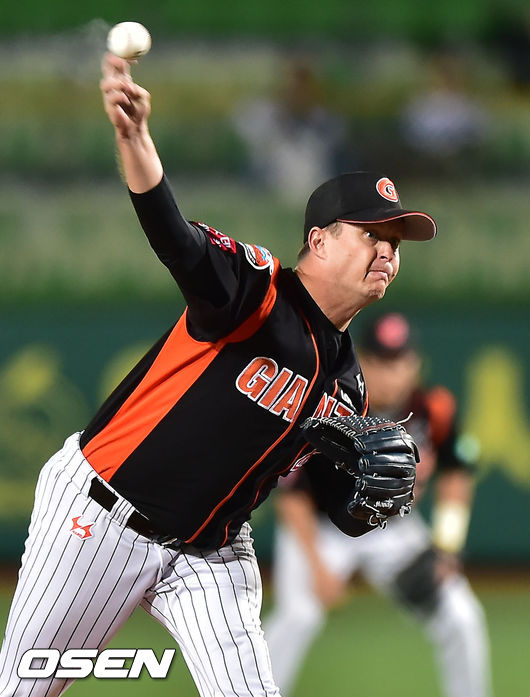 1일 오후 대구 시민구장에서 '2014 한국야쿠르트 세븐 프로야구' 삼성 라이온즈와 롯데 자이언츠 경기가 열렸다. 롯데 선발 옥스프링이 힘차게 공을 뿌리고 있다.