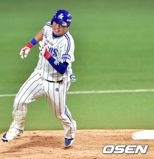 1일 오후 대구 시민구장에서 '2014 한국야쿠르트 세븐 프로야구' 삼성 라이온즈와 롯데 자이언츠 경기가 열렸다. 2회말 2사 주자 1루 삼성 박한이가 우익수 오른쪽 1타점 3루타를 날린 후 그라운드를 돌고 있다.