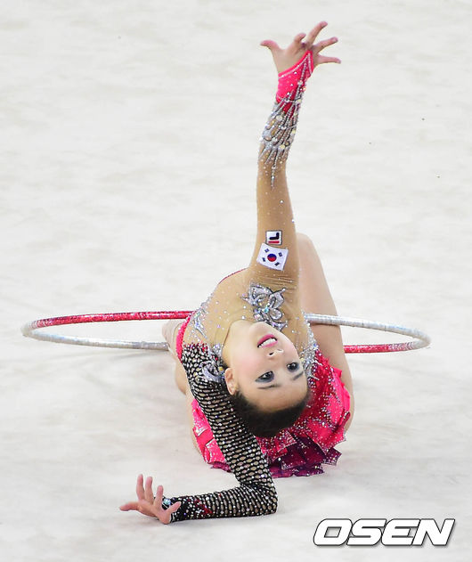 ‘체조요정’ 손연재(20, 연세대)가 볼에 이어 후프에서도 1위를 기록하며 리듬체조 개인종합 예선전을 상큼하게 출발했다. 예선 통과는 무난할 것이라는 평가가 지배적이다.
