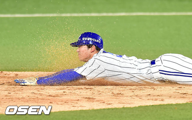 1일 오후 대구 시민구장에서 '2014 한국야쿠르트 세븐 프로야구' 삼성 라이온즈와 롯데 자이언츠 경기가 열렸다. 4회말 2사 주자 1루 삼성 나바로 타석에서 1루 주자 박해민이 2루 도루에 성공하고 있다.