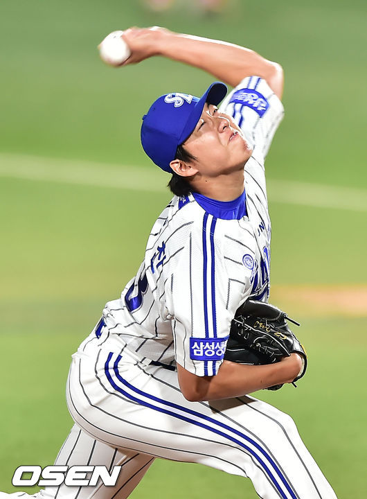 1일 오후 대구 시민구장에서 '2014 한국야쿠르트 세븐 프로야구' 삼성 라이온즈와 롯데 자이언츠 경기가 열렸다. 7회초 삼성 차우찬이 힘차게 공을 뿌리고 있다.