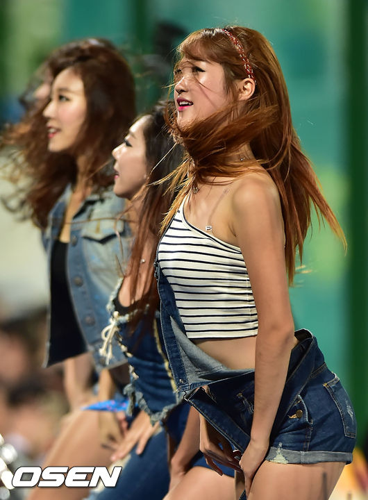 1일 오후 대구 시민구장에서 '2014 한국야쿠르트 세븐 프로야구' 삼성 라이온즈와 롯데 자이언츠 경기가 열렸다. 삼성 치어리더들이 화려한 무대를 선보이고 있다.