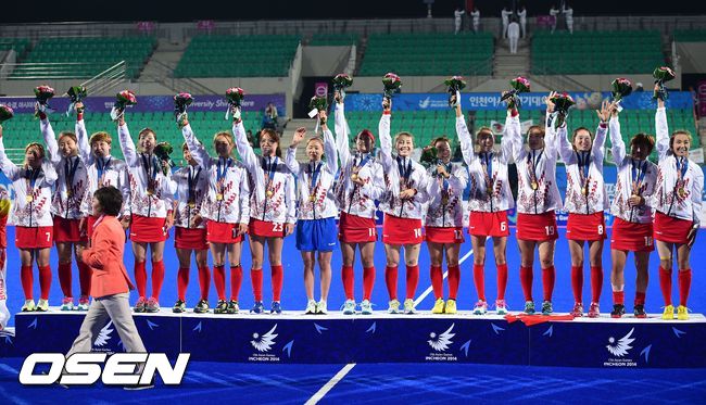 시상식서 하키대표팀이 포즈를 취하고 있다./soul1014@osen.co.kr