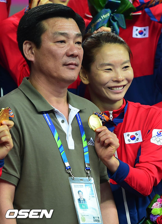 시상식에서 우선희가 임영철 감독에게 금메달을 전해주고 있다. / soul1014@osen.co.kr