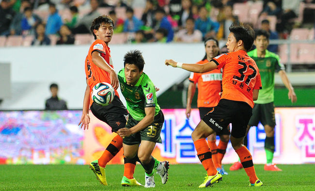 후반전에 분위기를 다시 가져오기 시작한 전북은 후반 13분 김동찬 대신 이상협을 투입하며 공격진에 변화를 꾀했다. 동점골이 필요한 제주도 후반 22분 송진형을 빼고 박수창을 투입해 공격의 고삐를 늦추지 않았다.